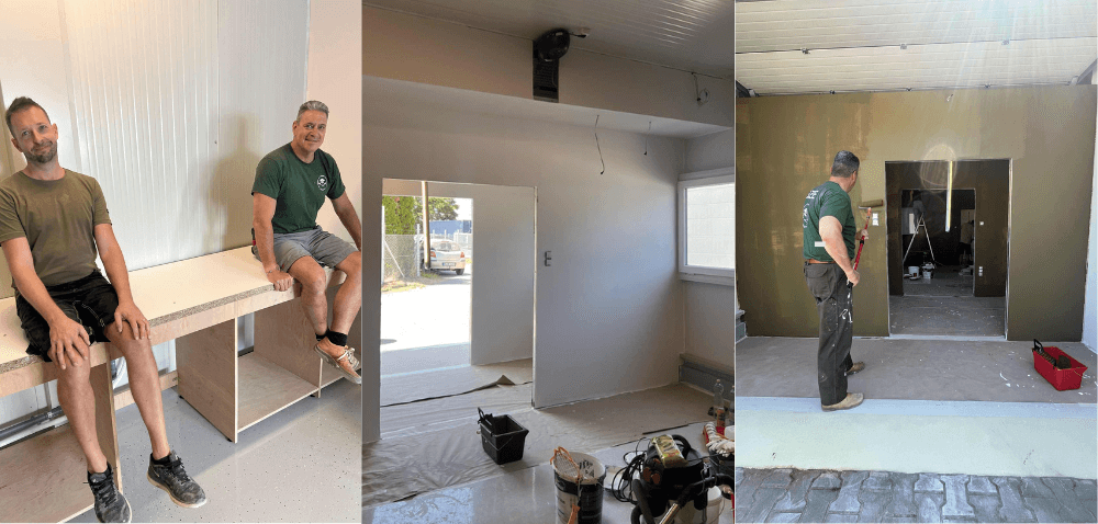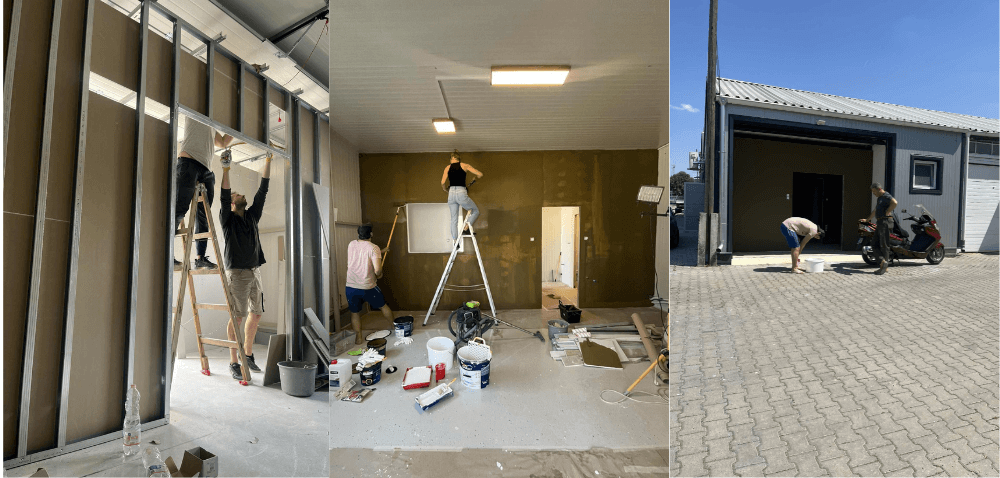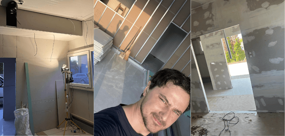 Megtörtént a falak felújítása, kiöntötték a padlót, de a munka igazán csak ekkor kezdődött el, hogy felosszuk a 60 négyzetméteres teret úgy, hogy az megfeleljen a szabályoknak, de számunkra is élhető legyen.