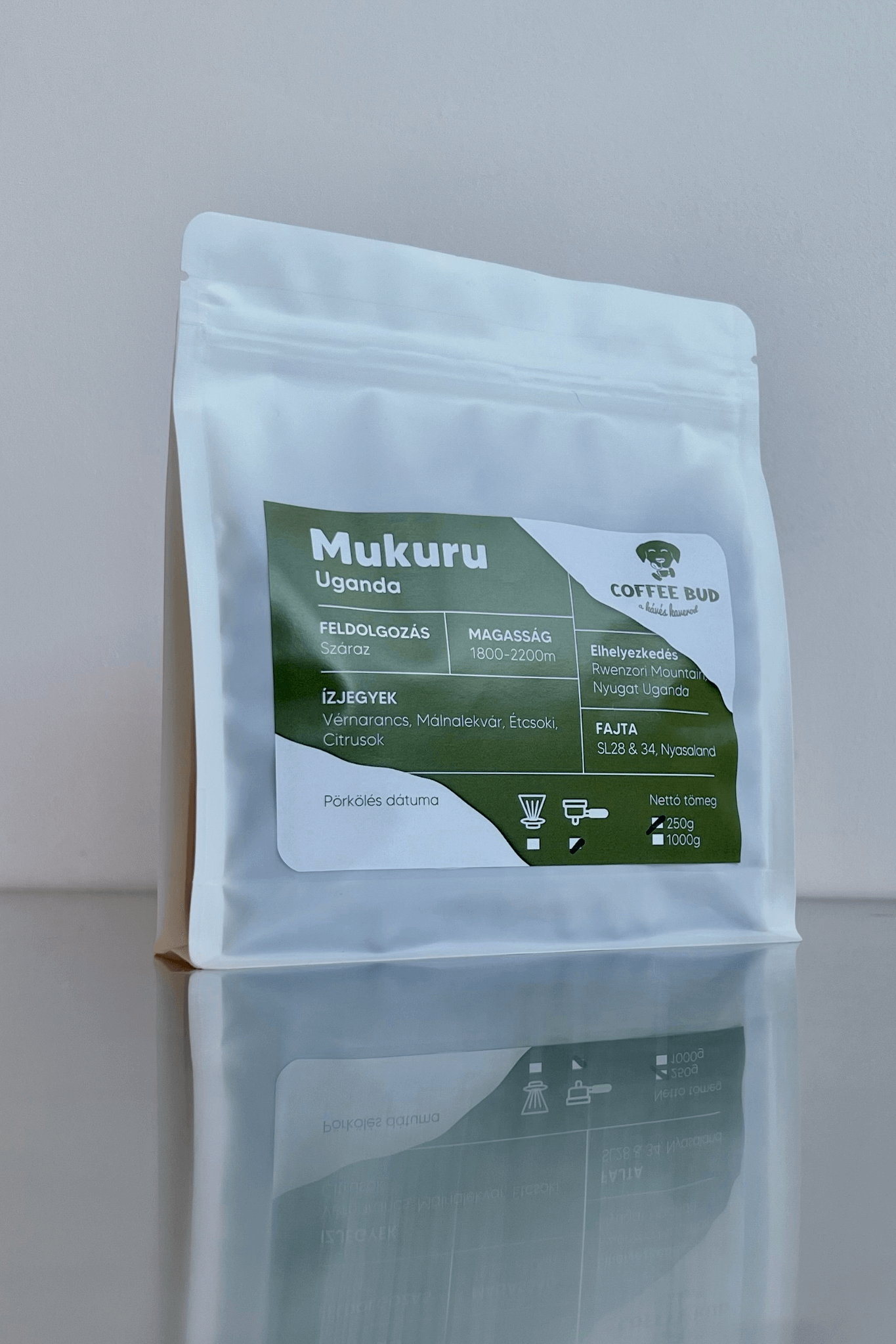 A Mukuru West Nyugat-Ugandából, a Rwenzori-hegység környékéről származik, egy olyan régióból, ahol a naturál kávék beszerzése különösen összetett. A minőség kulcsa a gondosan kiválasztott termelők és az elkülönített feldolgozás.